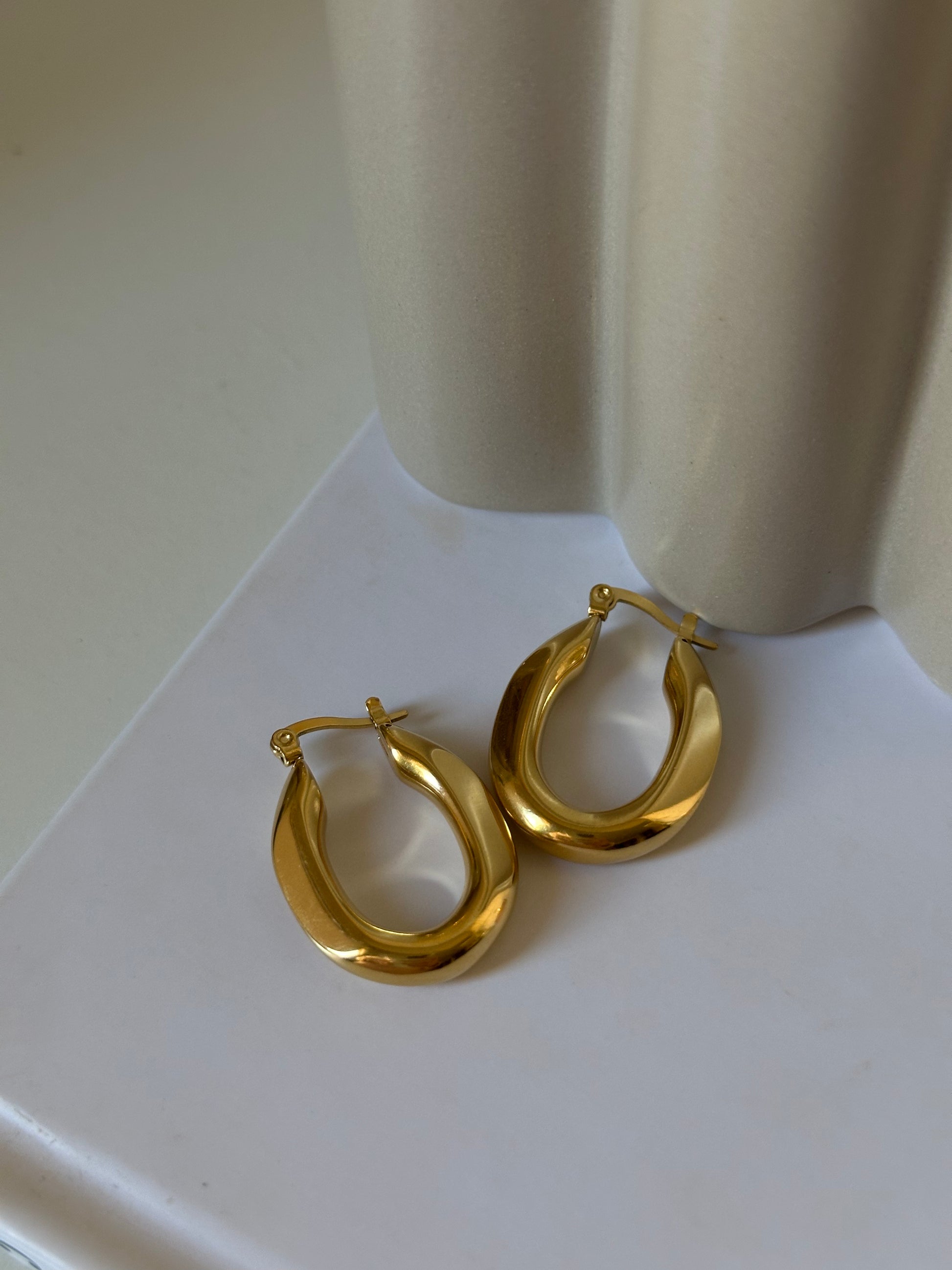 Aros de acero inoxidable y baño de oro de 18K, son un básico para tu joyero.