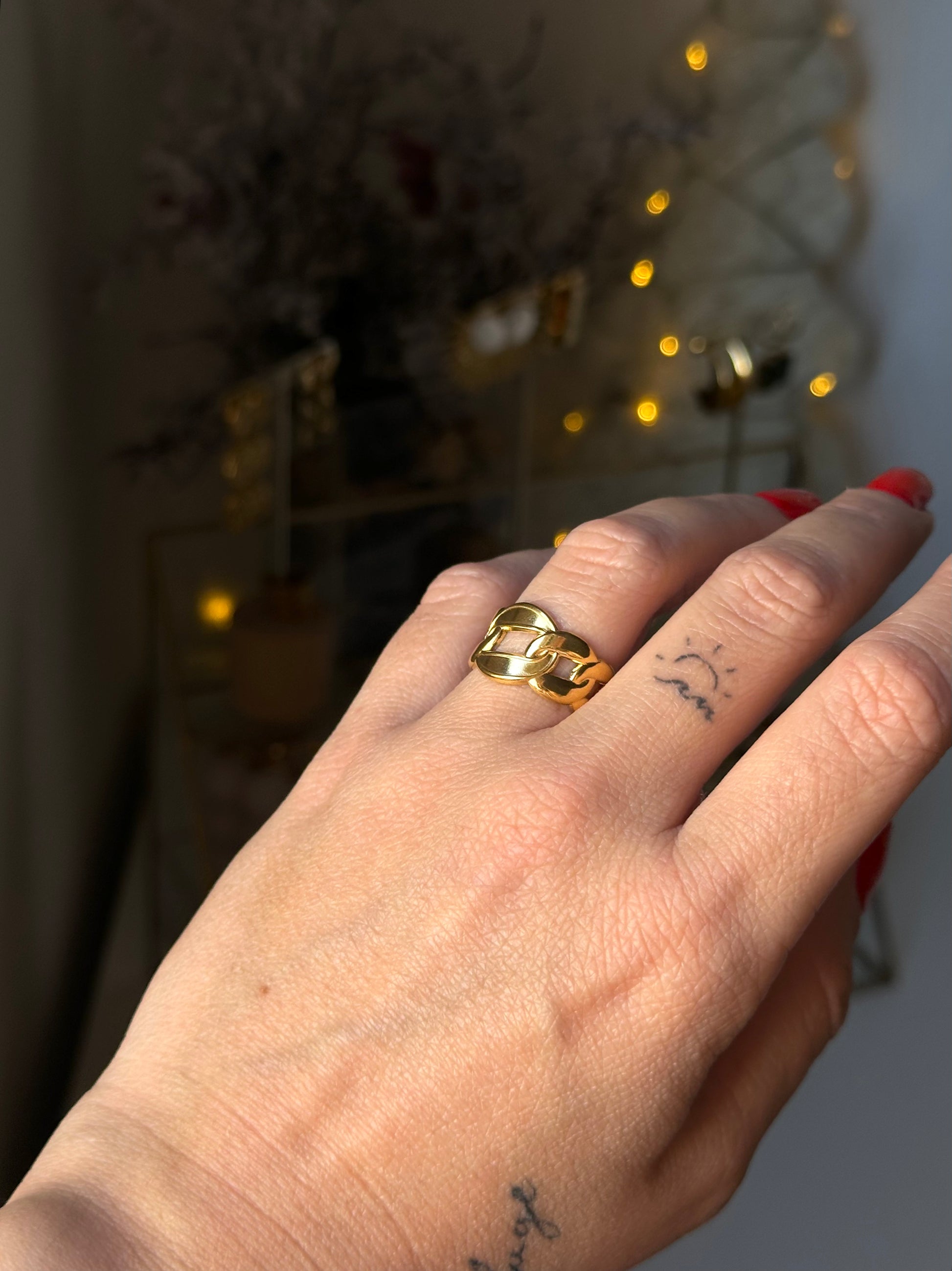 El Anillo Magnolia, siendo ésta una pieza ajustable, con diseño de textura de cadena es una pieza atrevida y sofisticada, ideal para quienes buscan destacar con estilo. Su textura inspirada en eslabones de cadena le otorga un aspecto robusto y contemporáneo, simbolizando conexión y fortaleza. El acabado dorado añade un toque de lujo, haciendo que esta joya sea perfecta tanto para ocasiones formales como casuales. El Anillo Magnolia es una opción poderosa y versátil, ideal para un líder que valora la distinción y la modernidad en sus accesorios.