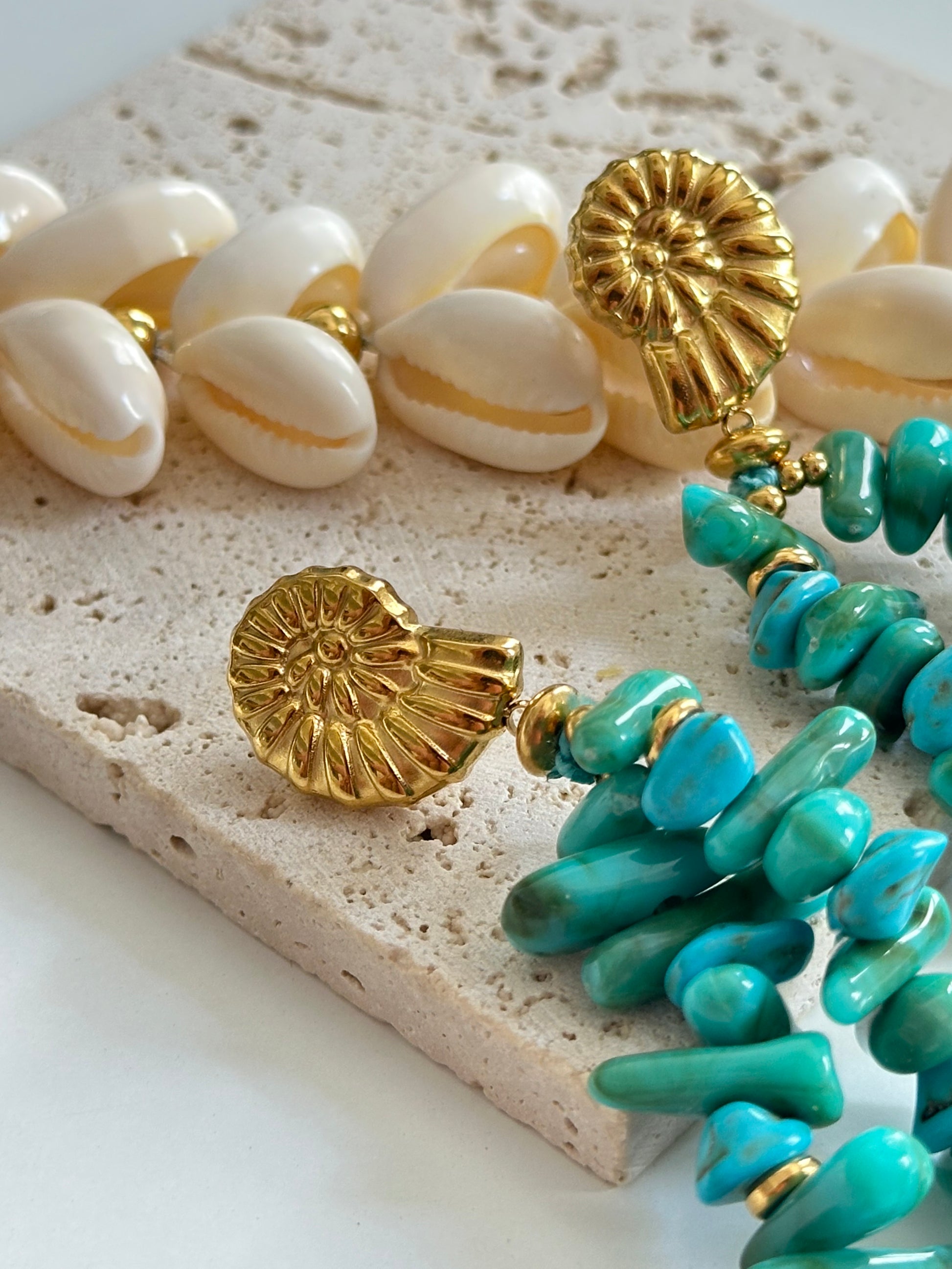 Los pendientes Corallo Vivo Turquesa son la elección perfecta para quienes buscan joyas diferentes, llenas de carácter y con un diseño atemporal que conecta con la esencia del mar. Destacan por su diseño único que combina la sofisticación del dorado con piezas irregulares en tono marfil.