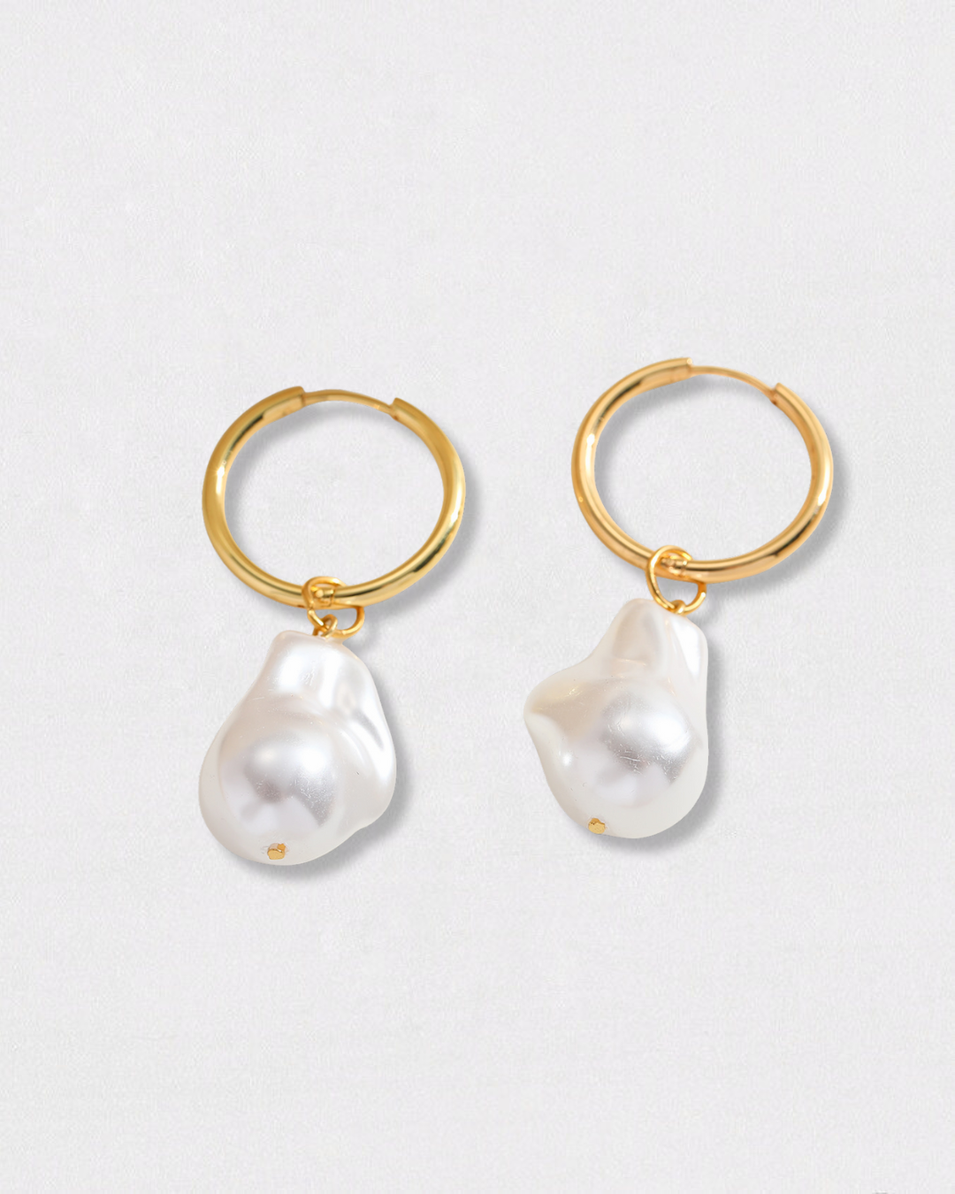 Fabricados en acero inoxidable con baño dorado y detalle de nácar sintético, son resistentes al agua, hipoalergénicos y perfectos para el uso diario.