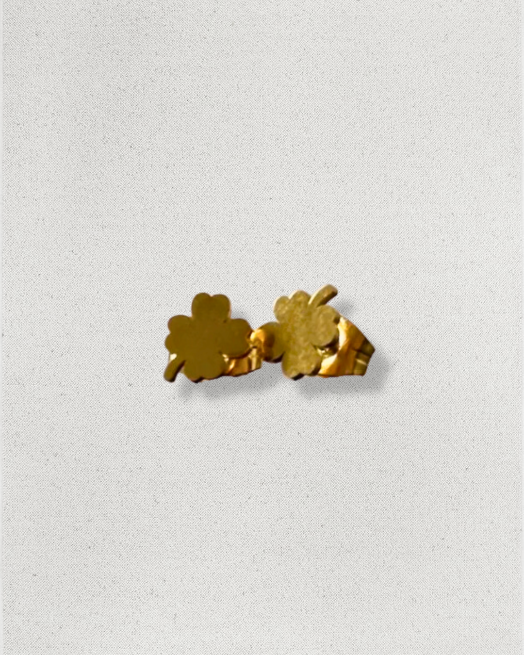 Pendiente para piercing, en forma de trébol de la suerte, fabricado en acero inoxidable y baño de oro de 18K, cierre de tuerca.