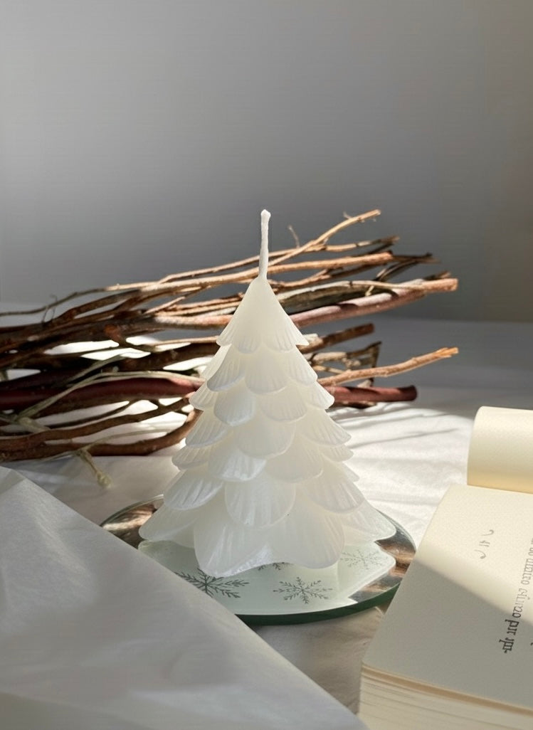 Vela decorativa en forma de abeto navideño pequeño, hecha a mano con cera de soja 100% natural. Su diseño limpio y minimalista aporta un toque festivo suave y delicado, ideal para complementar cualquier rincón con una decoración navideña sencilla y acogedora.