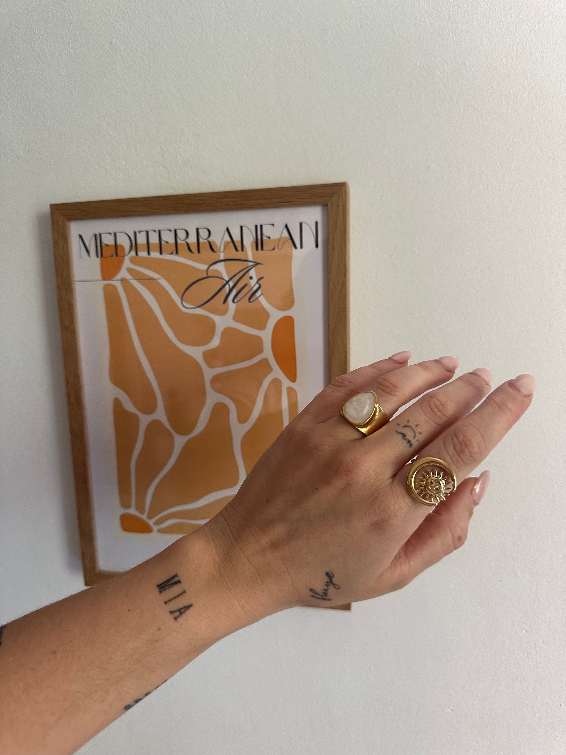 Anillo con diseño de piedra blanca, fabricado en acero inoxidable y bañado en 18K.