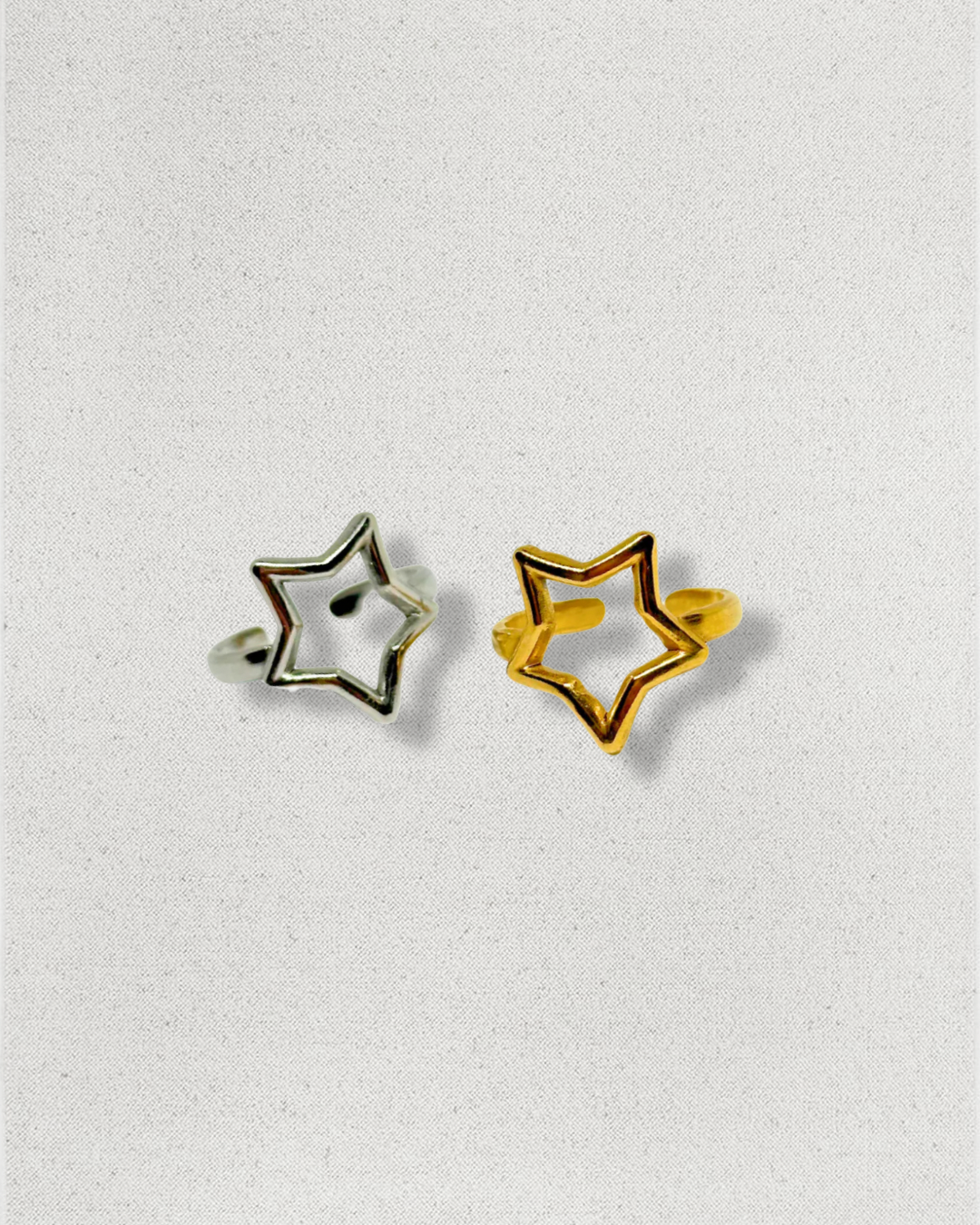 Anillo con diseño de estrella, fabricado en acero inoxidable y baño de plata.