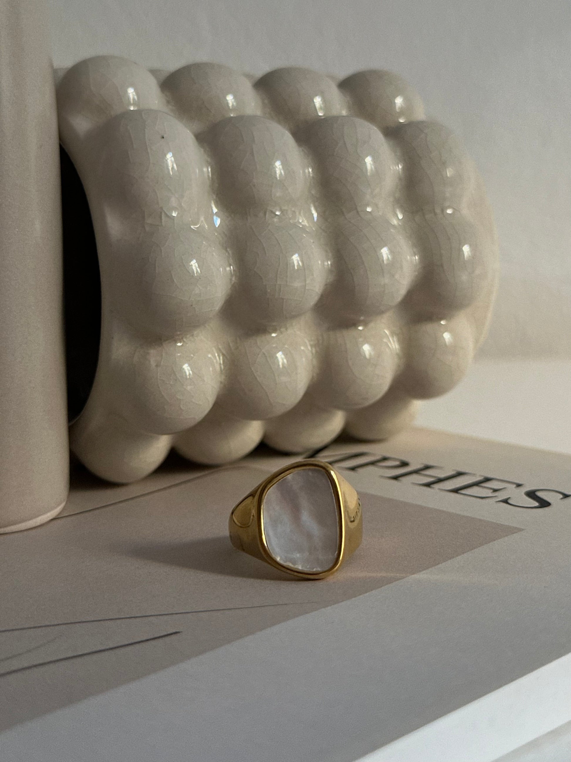 El anillo Scarlet tiene un diseño abstracto y moderno que lo hace súper original. La piedra central de nácar le da un toque suave y brillante, con esos reflejos perlados que no falla en ninguna colección de la marca. Su forma fluida y única lo convierte en una pieza especial, perfecta para quienes buscan algo diferente y con estilo, ideal para llevar tanto en el día a día como en eventos más formales. Es un accesorio que combina lo natural con un toque moderno, ¡sin perder elegancia!