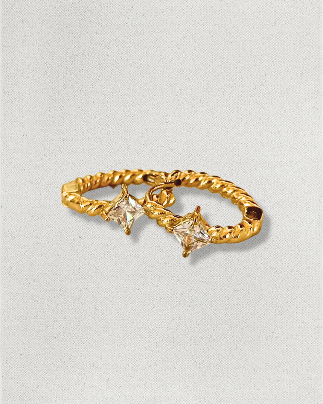Estos aros destacan por su textura trenzada, que añade un toque artesanal y distintivo a su diseño. En el centro, una circonita brillante resalta con elegancia, aportando un contraste sutil pero impactante. La combinación de su acabado trenzado y el brillo profundo de la piedra crea un equilibrio perfecto entre lo clásico y lo moderno. Ideales para elevar cualquier look, estos aros son versátiles y sofisticados, perfectos para ocasiones tanto formales como casuales, añadiendo un toque de lujo discreto.