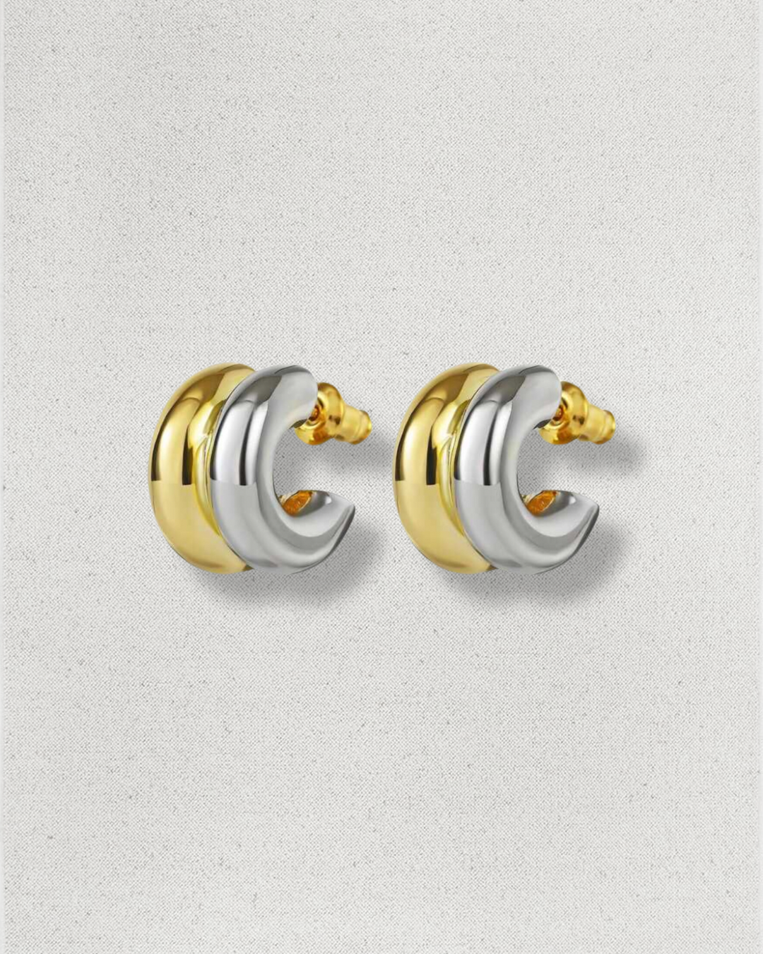 Nuestros Aros Fabiola, son pequeños aros de diseño sencillo que destacan por su combinación de plata y dorado, una de las tendencias más populares en el mundo de la joyería. Esta mezcla de metales aporta un toque moderno y sofisticado, haciéndolos perfectos para quienes buscan un accesorio versátil y chic. Su tamaño compacto y diseño minimalista los convierten en una pieza fácil de combinar con cualquier look, desde lo más casual hasta lo más elegante. Estos aros son el equilibrio perfecto entre sencillez y estilo, ideales para quienes desean añadir un toque contemporáneo y fresco a su colección de joyas.