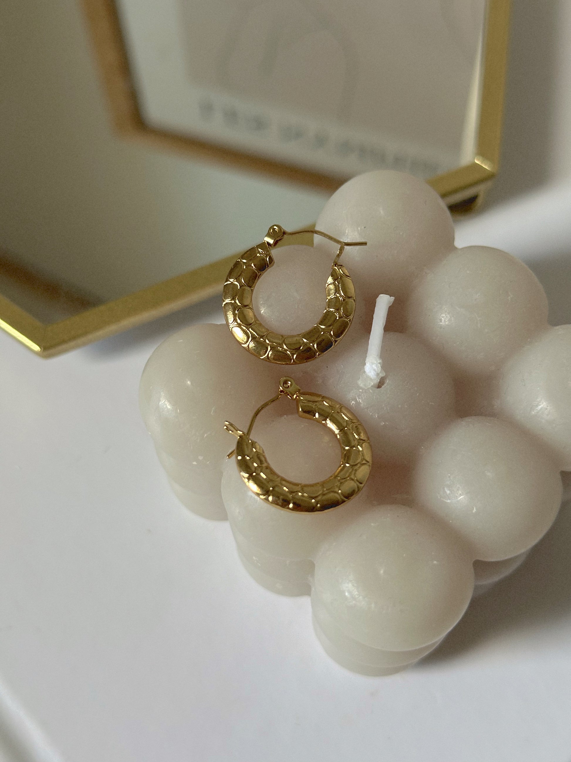 Aros pequeños cerrados, de acero inoxidable y baño de oro.