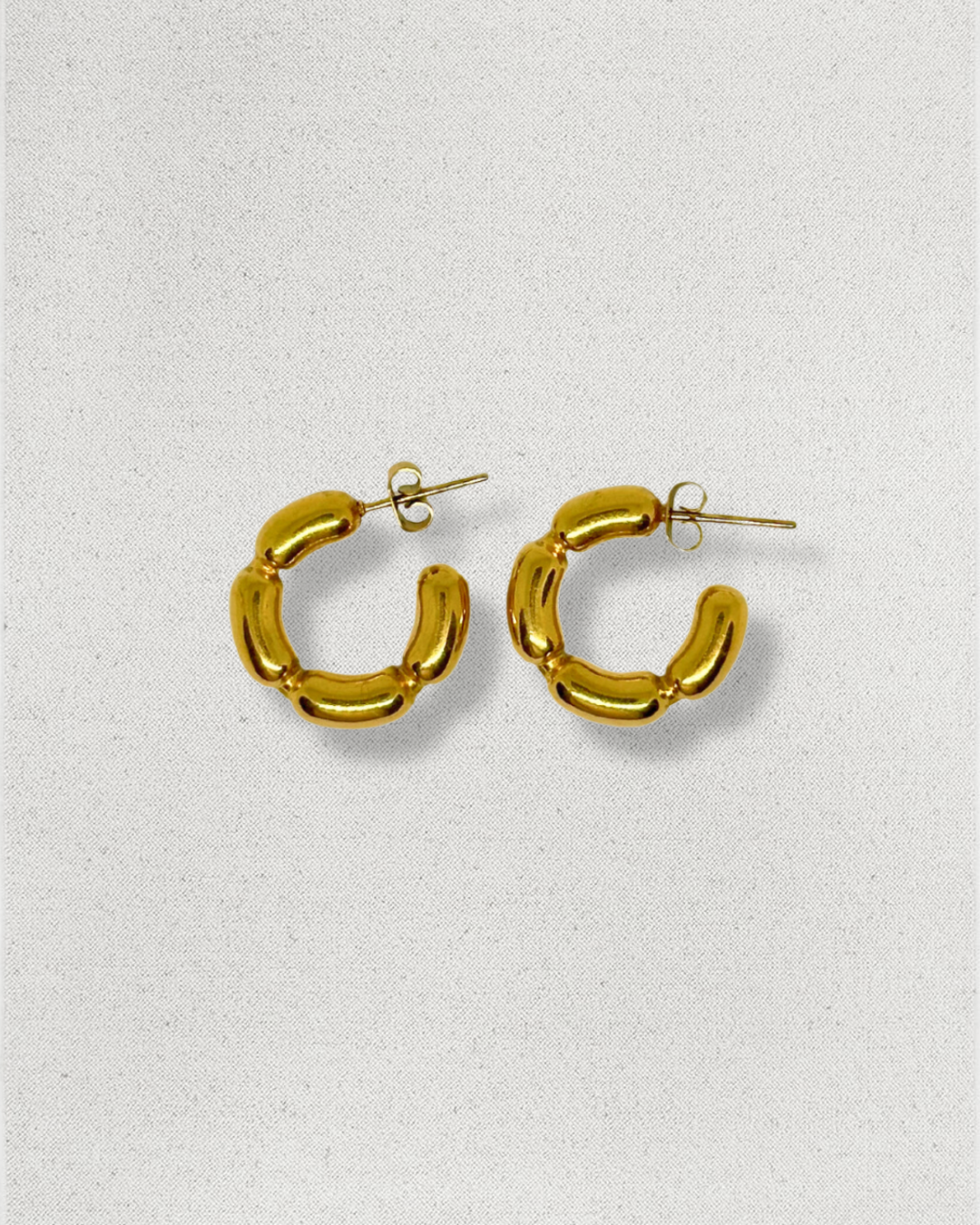 Aros de acero inoxidable y baño de oro de 18K, son un básico para tu joyero.