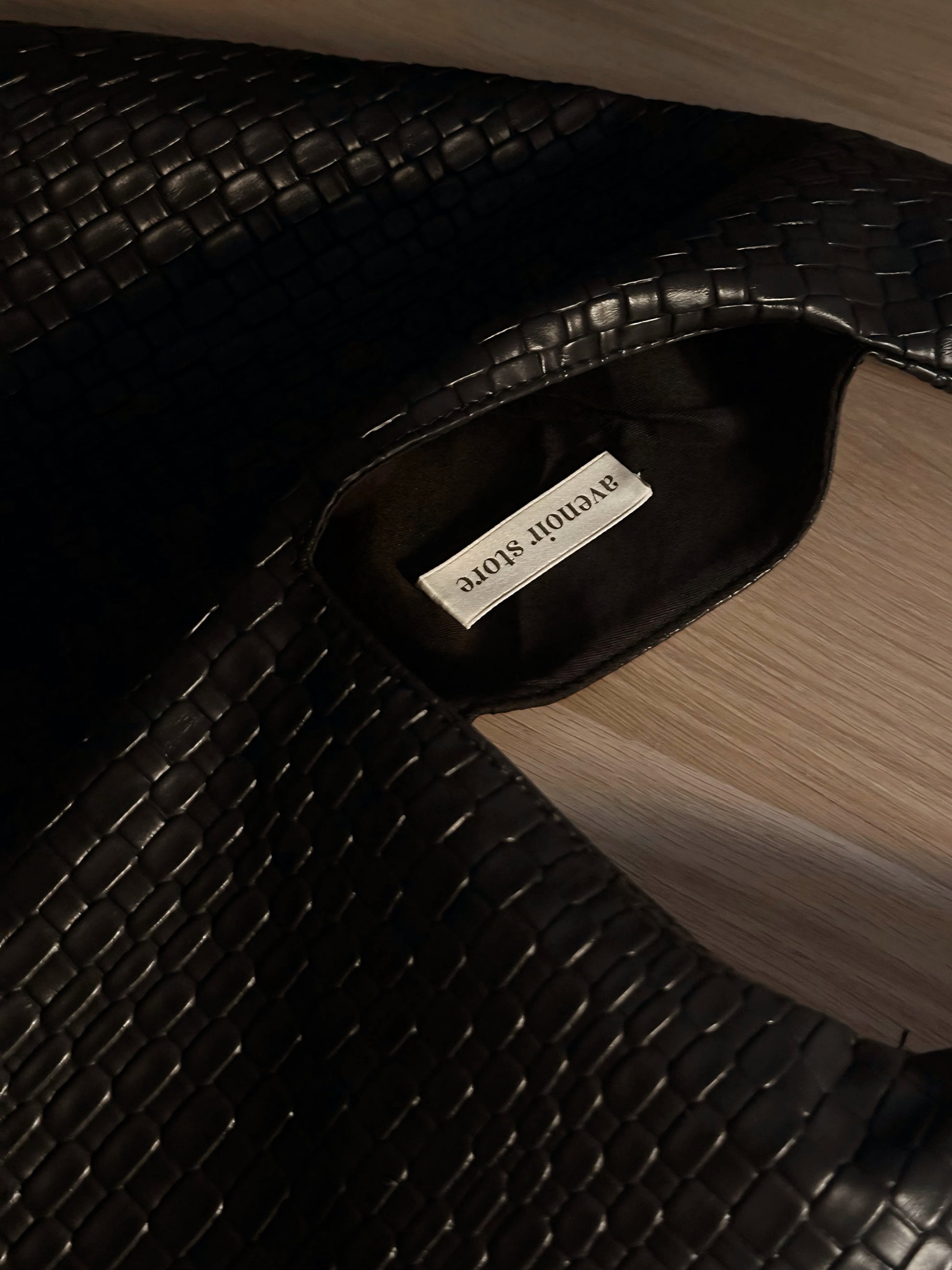 - Material: efecto piel trenzada.