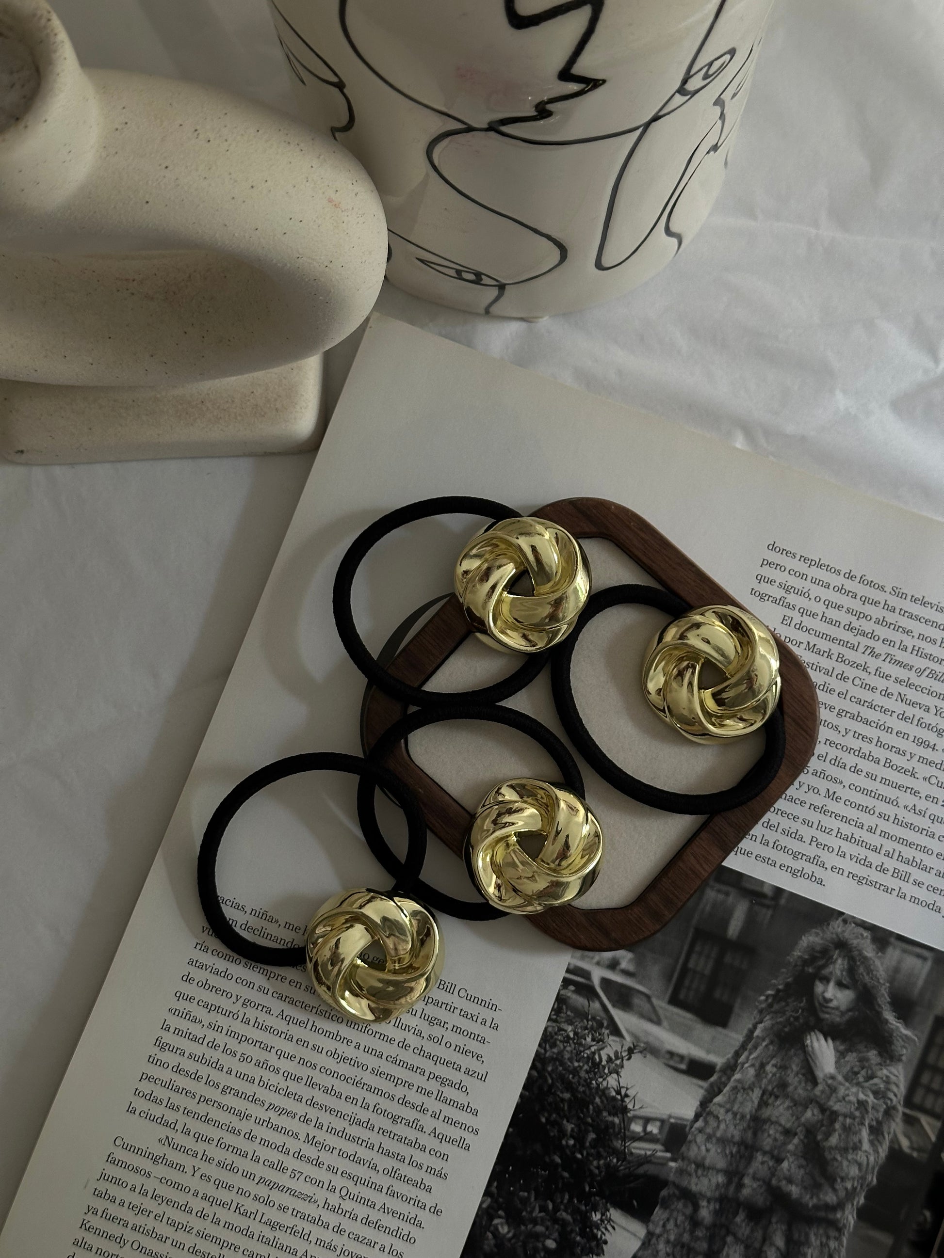 Un toque diferente para tu día a día. Este coletero con detalle metálico en forma de floe dorado aporta un aire diferente y versátil a cualquier peinado. Combina la funcionalidad de una goma elástica resistente con el brillo elegante de un accesorio que transforma lo sencillo en especial. Ideal tanto para looks casuales como para ocasiones más formales.