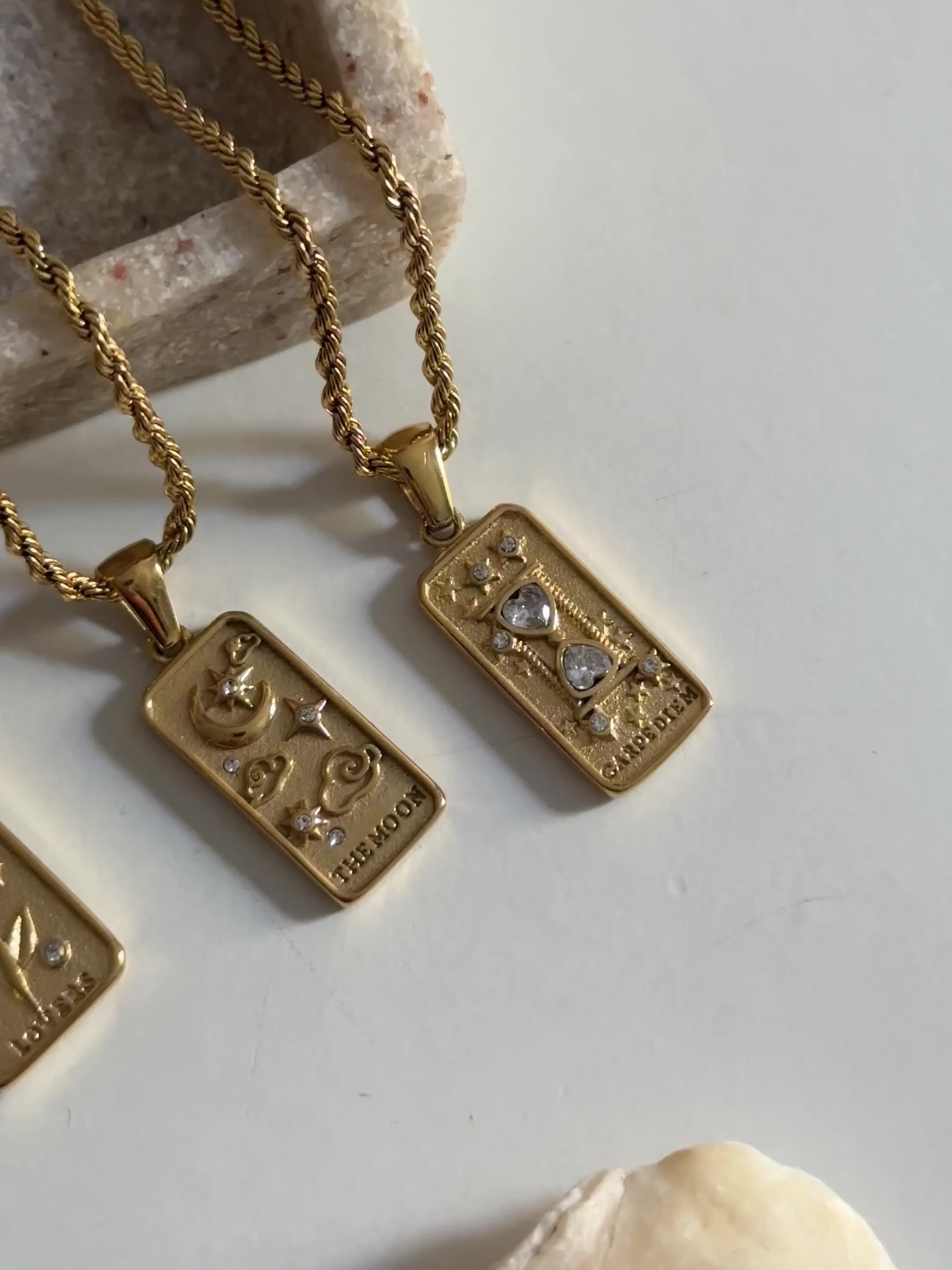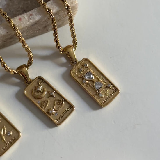 Collares acero inoxidable y baño de oro 18K, con diseño de cartas astrales.