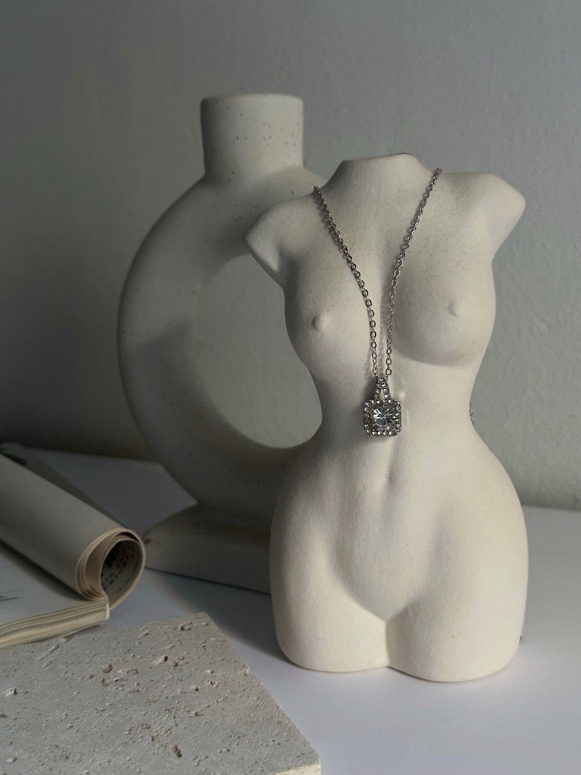 Este collar combina lujo y versatilidad, siendo el complemento perfecto tanto para el díd a día como para ocasiones formales. Su diseño clásico con un toque moderno realza la belleza y la luminosidad del rostro.