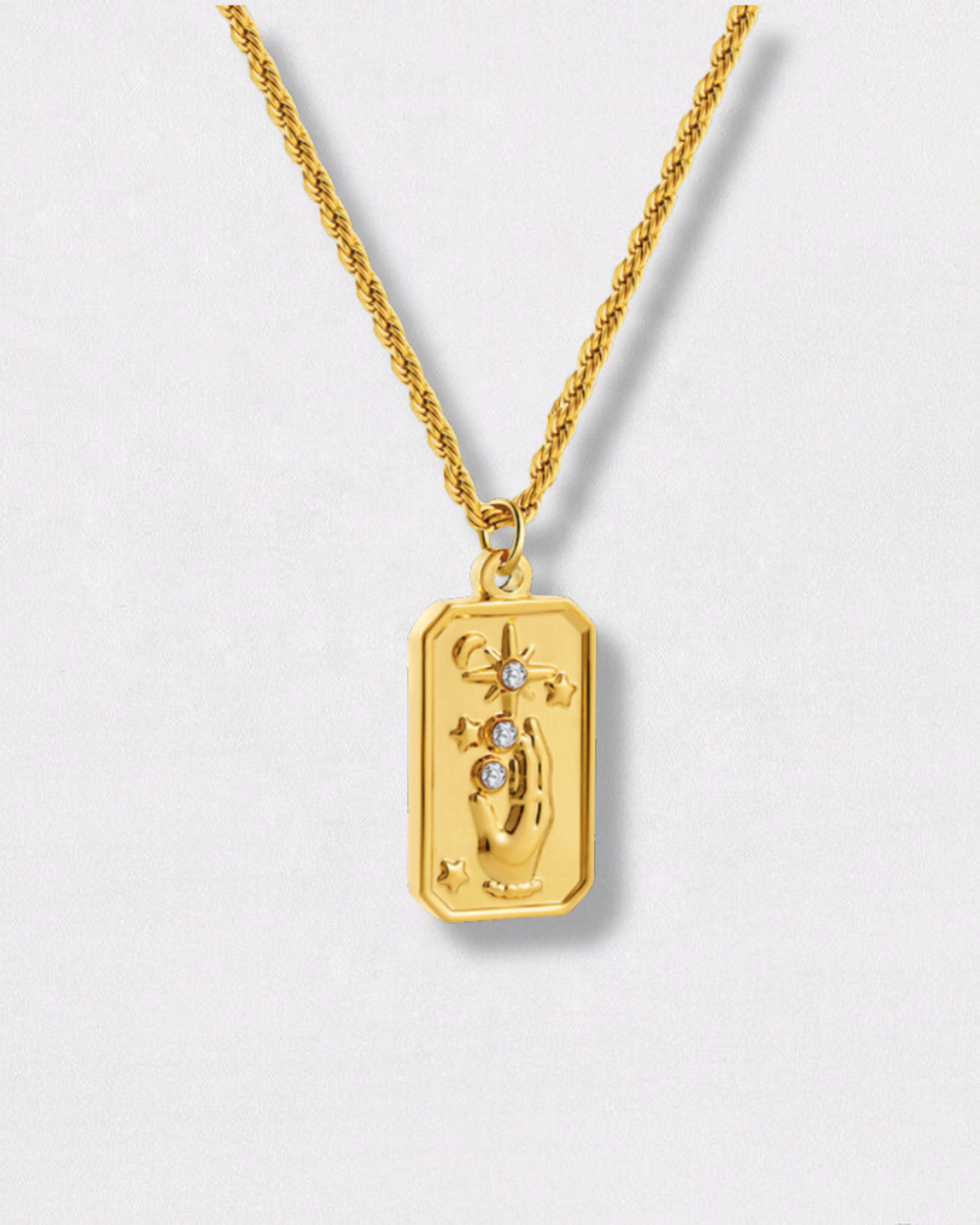 El Collar Protección es uno de los collares que se suman en esta nueva colección a nuestros collares astrológicos que tanto describe a Avenoir. Este diseño de una mano juntó con el símbolo de la estrella de la carta del Tarot, simboliza protección, lo cual hace que este collar tenga un sentido tan especial que necesites hacerlo tuyo.