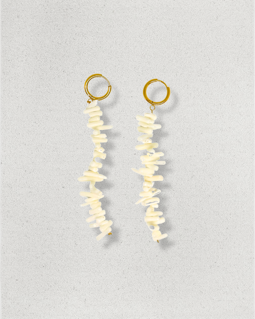 Pendientes con diseño de piedras color turquesa, fabricado en acero inoxidable y bañado en oro de 18K.