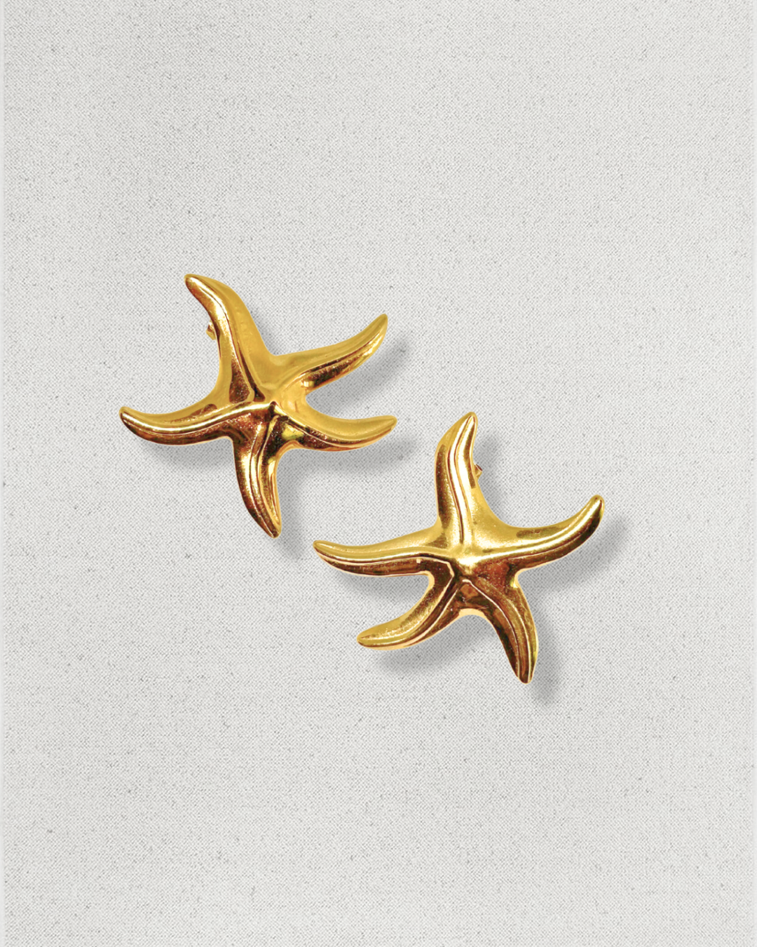 Pendientes con diseño de estrellas de mar, fabricado en acero inoxidable y bañado en 18K.