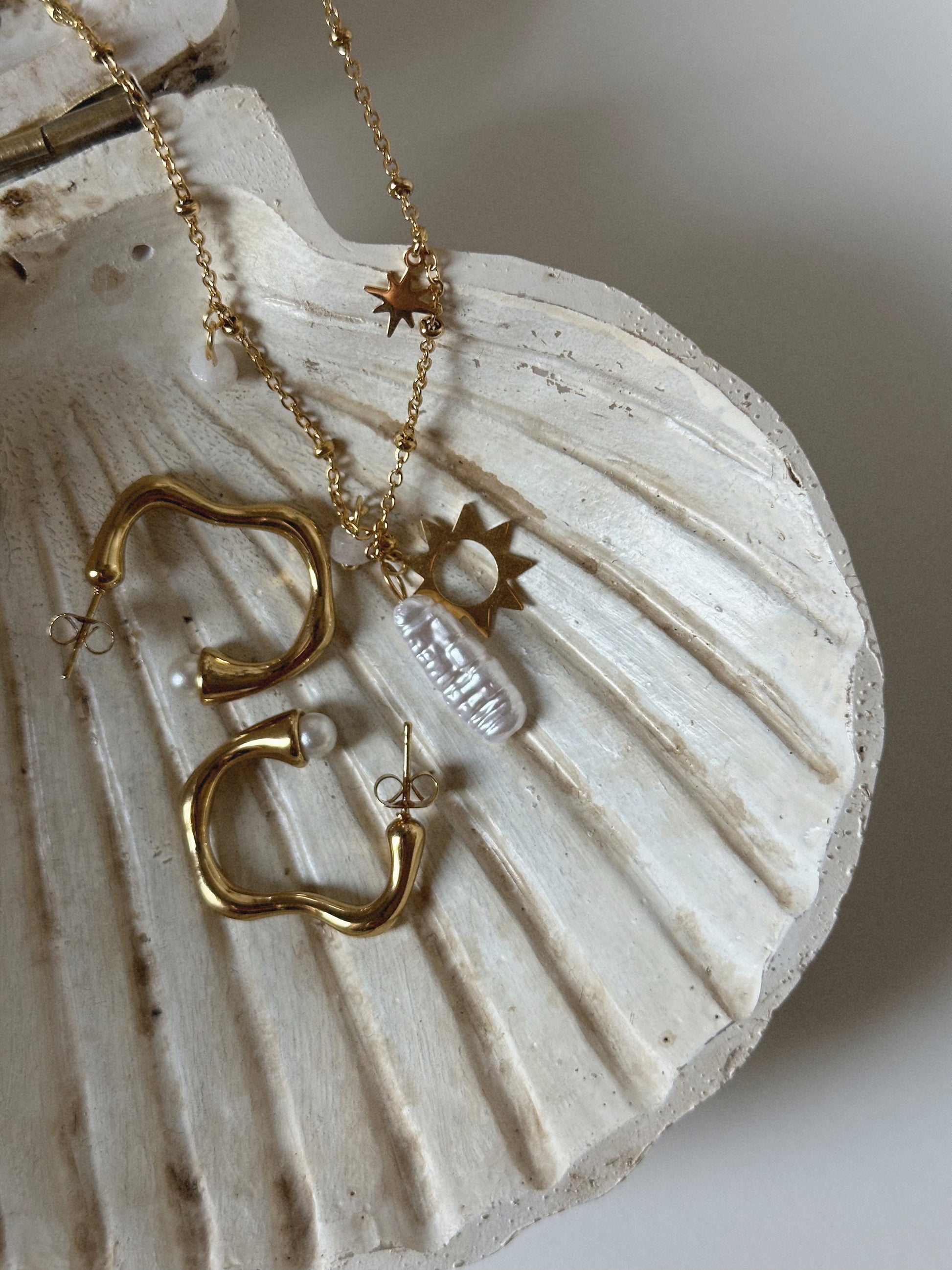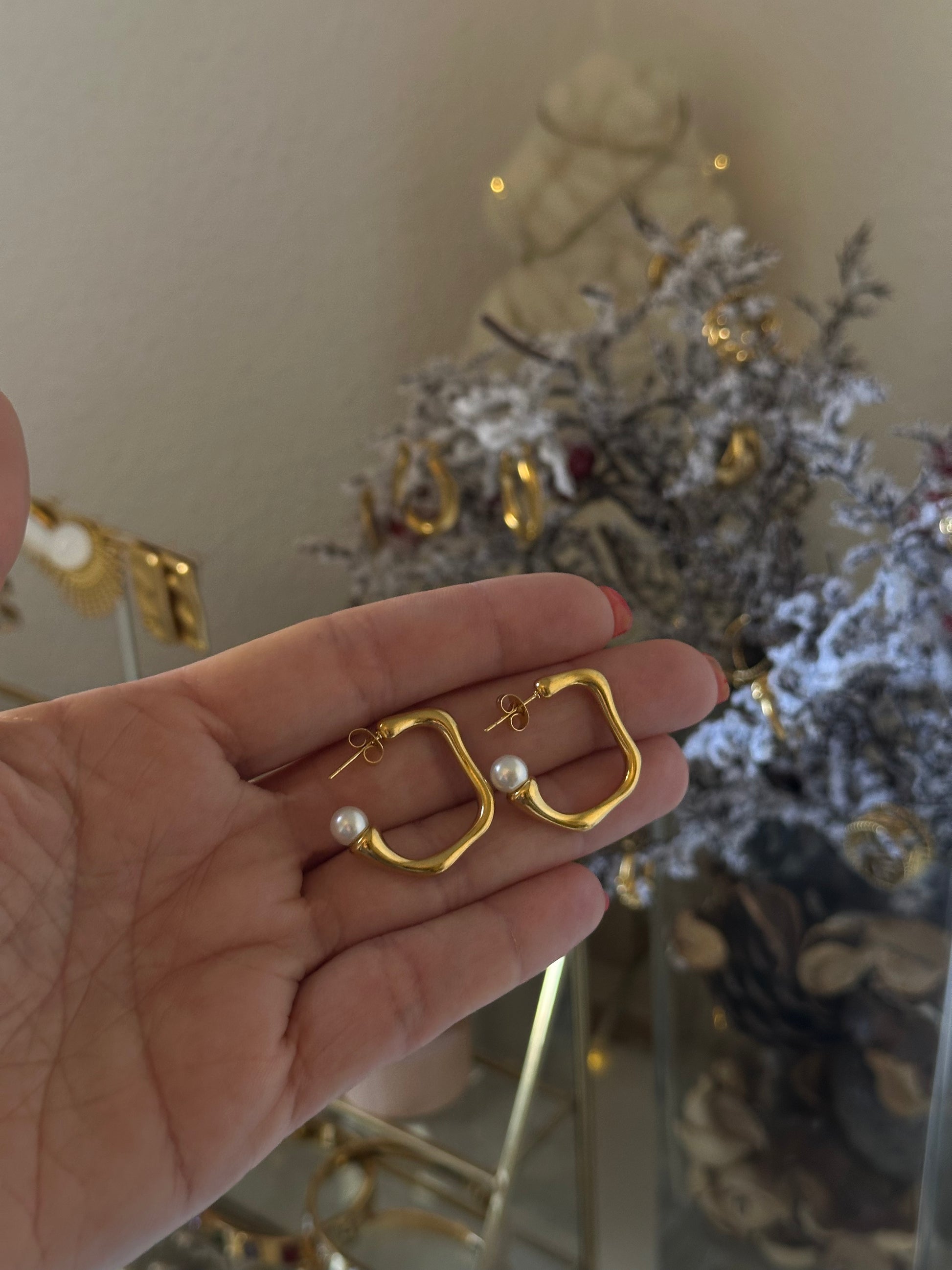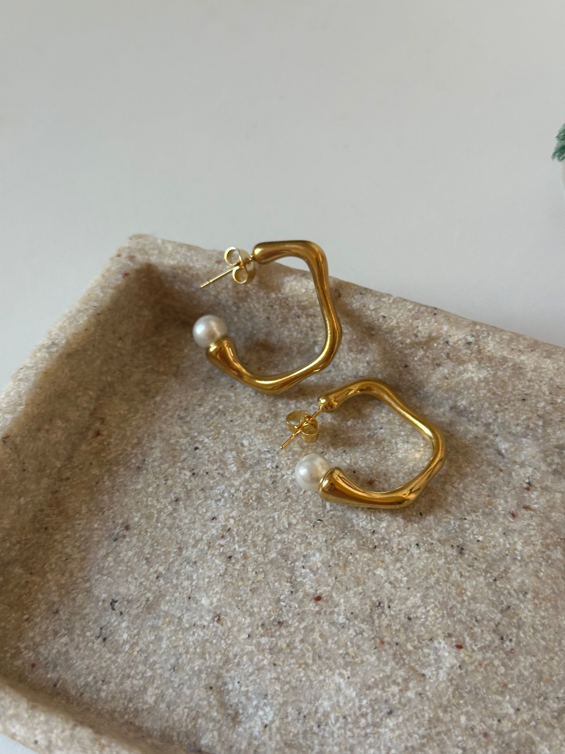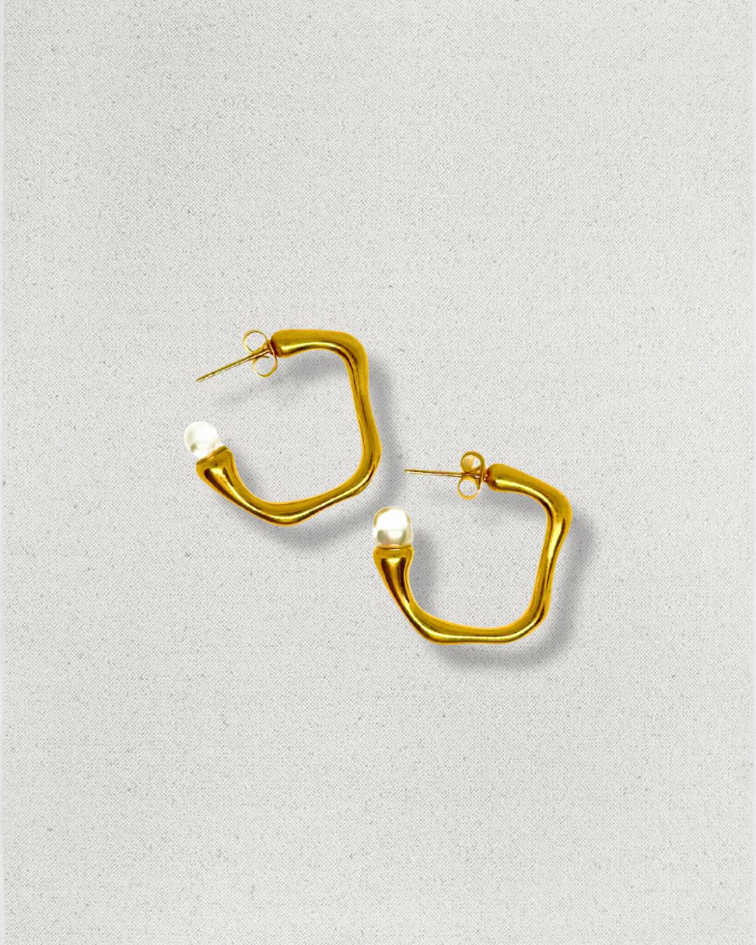 Pendientes aro con perla de nácar. Fabricado en acero inoxidable y baño de oro.