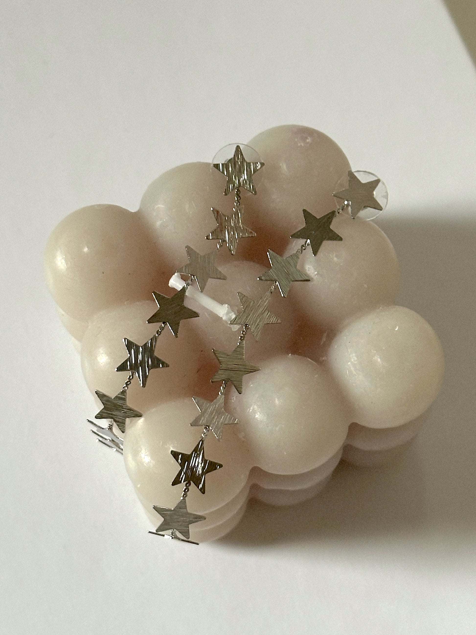 Pendientes largos de estrellas, fabricados en acero inoxidable y baño de plata.