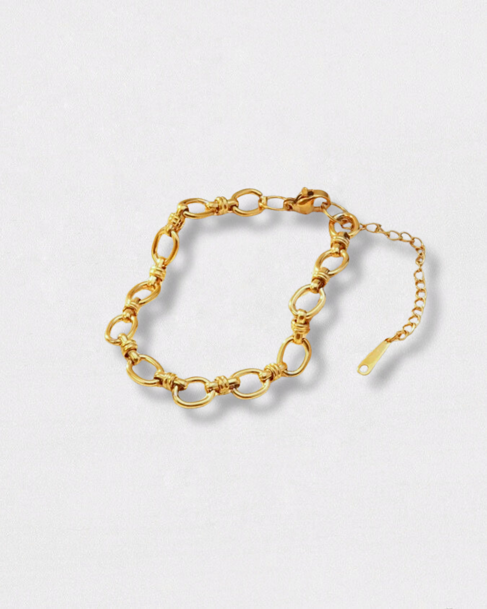 Esta pulsera, a juego del Collar Alaia, es de eslabones grandes y entrelazados, dando así a un diseño robusto y llamativo, añade un toque de fuerza y elegancia contemporánea a cualquier atuendo. Su versatilidad y diseño minimalista permite llevarlo solo como pieza protagonista o en capas, creando un efecto de contraste moderno.