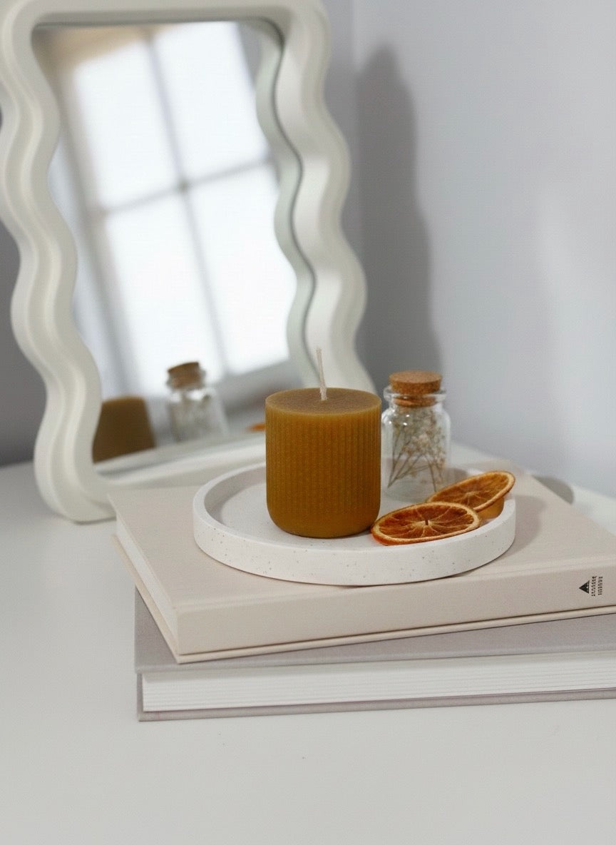 Las velas de miel de Velisse Candles están creadas con cera de abeja 100% natural, un material que destaca por su aroma cálido y su capacidad de purificar el ambiente de forma natural. Su fragancia suave a miel envuelve cualquier espacio en una sensación instantánea de calma, bienestar y armonía.