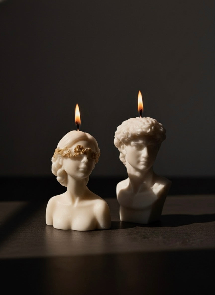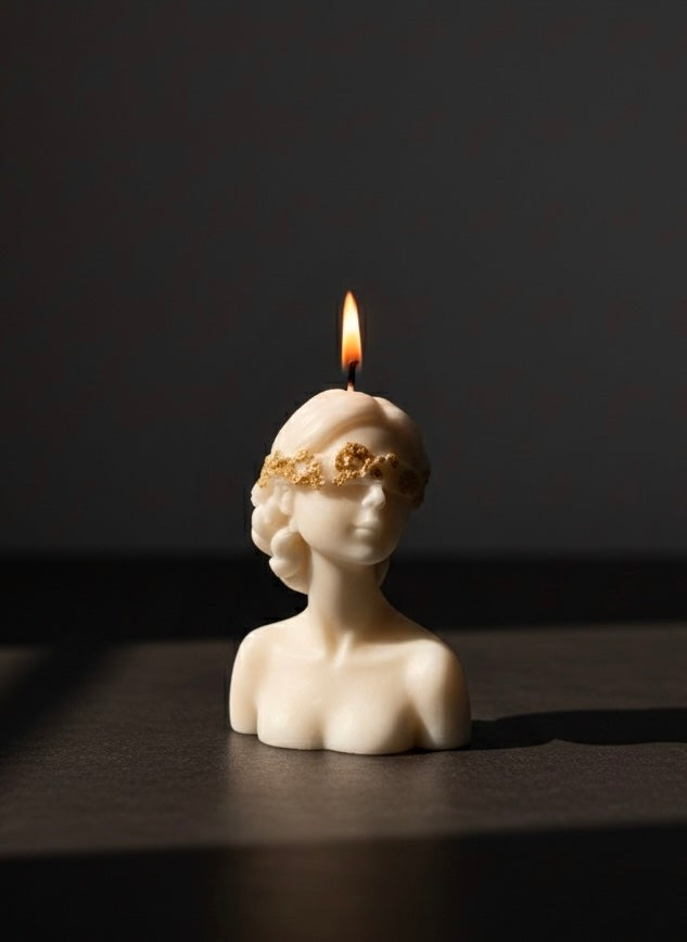 Nuestra vela Afrodita está moldeada completamente a mano con cera de soja 100% natural. Su silueta delicada y la corona de flores la convierten en una pieza decorativa llena de calma y feminidad. Cada detalle está hecho con mimo, creando una vela única que aporta belleza suave y un toque decorativo a cualquier espacio.